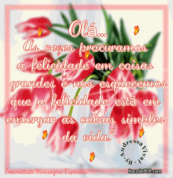 Olá… as vezes procuramos a felicidade em coisas grandes, e nos esquecemos que a felicidade está em enxergar as coisas simples da vida.