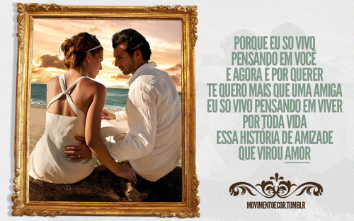 Porque eu só vivo pensando em você e agora e por querer te quero mais que uma amiga, eu só vivo pensando em viver por toda a vida essa história de amizade que virou amor.