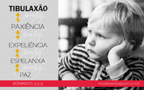 E não somente isto, mas também nos gloriamos nas tribulações; sabendo que a tribulação produz a paciência, e a paciência a experiência, e a experiência a esperança. E a esperança não traz confusão, porquanto o amor de Deus está derramado em nossos corações pelo Espírito Santo que nos foi dado.