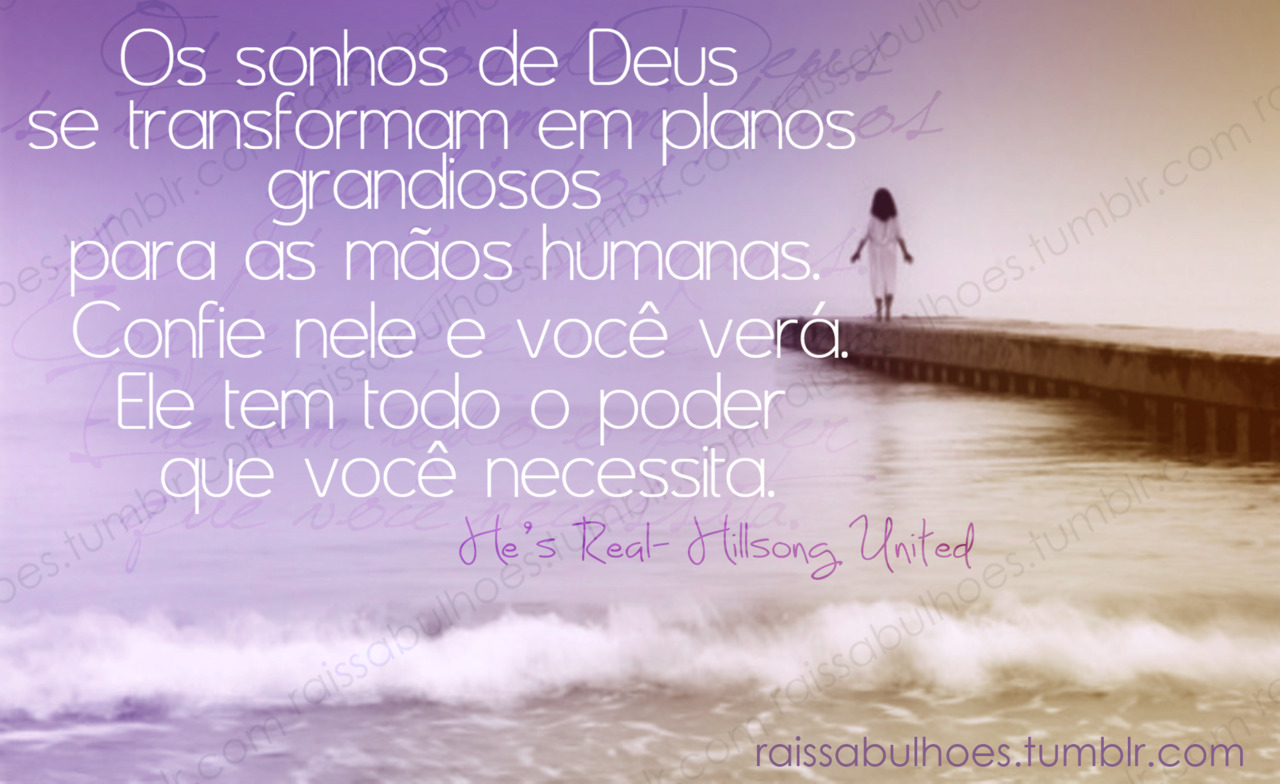 Os sonhos de Deus se transformam em sonhos grandiosos para as mãos humanas. Confie nEle e você verá. Ele tem todo o poder que você necessita.