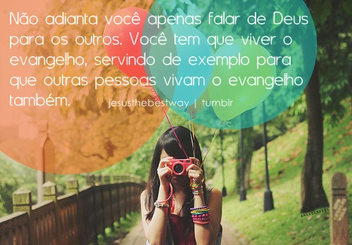 Não adianta você apenas falar de Deus para os outros. Você tem que viver o evangelho, servindo de exemplo para que outras pessoas vivam o evangelho também.