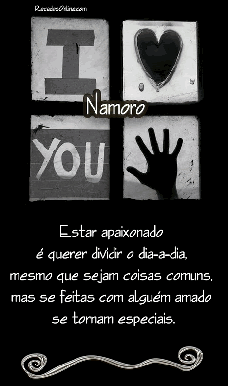 Estar apaixonado é querer dividir o dia-a-dia, mesmo que sejam coisas comuns, mas se feitas com alguém amado se tornam especiais.