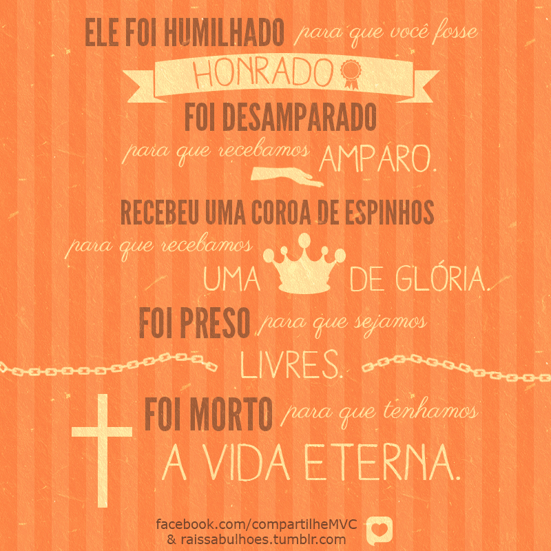 Ele foi humilhado para que você fosse honrado, foi desamparado para que recebamos amparo.
