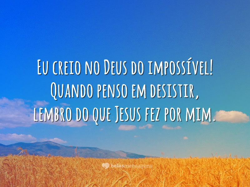 Crer em um Deus do impossível que nunca age sem propósitos, pois, se Ele destruir algo em sua vida agora é porque Ele tem algo muito melhor pra você amanhã, se Ele esta te prendendo a alguma situação hoje é porque amanhã irá te soltar para as suas grandes bençãos, alcançar.
