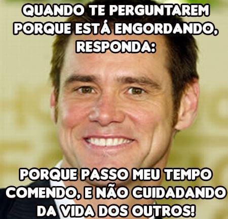 Quando te perguntarem porque você esta engordando, responda: Porque passo meu tempo comendo, e não cuidando da vida dos outros.