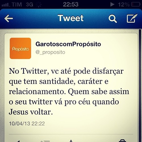 No twitter, você pode até disfarçar que tem santidade, caráter e relacionamento. Quem sabe assim o seu twitter vá pro céu quando Jesus voltar.