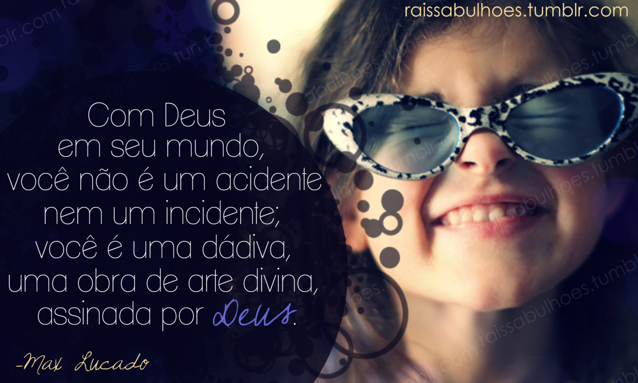 Com Deus em seu mundo, você não é um acidente nem um incidente; você é uma dádiva, uma obra de arte divina assinada por Deus.