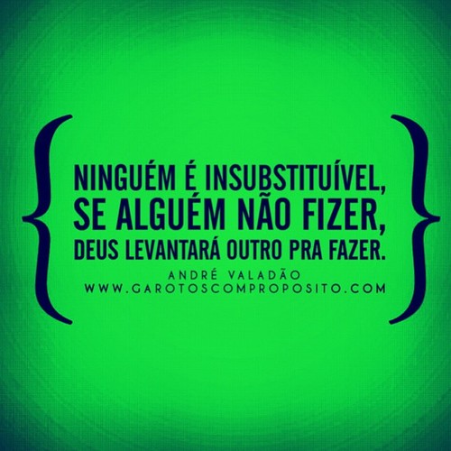 Ninguém é insubstituível, se alguém não fizer, Deus levantará outro pra fazer.
