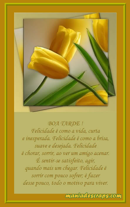 Categorias Boa Tarde Tags agir, Boa Tarde, brisa, chegar, curta, Felicidade, flor, inesperada, motivo, satisfeito, sofrer, sorrir, tarde, vida, viver