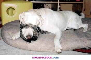 Gato abraçando cachorro