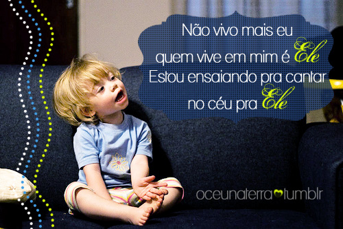 Jesus vive em MIM! 30 de setembro de 2012 Por Rosane Não vivo mais eu, quem vive em mim é Ele. Estou ensaiando pra cantar no céu pra Ele.