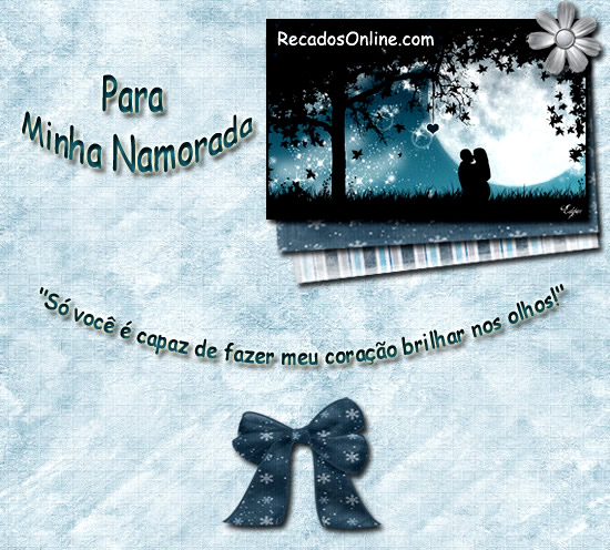 Para minha namorada… 16 de fevereiro de 2013 Por Rosane Para minha namorada… Só você é capaz de fazer meu coração brilhar nos olhos!