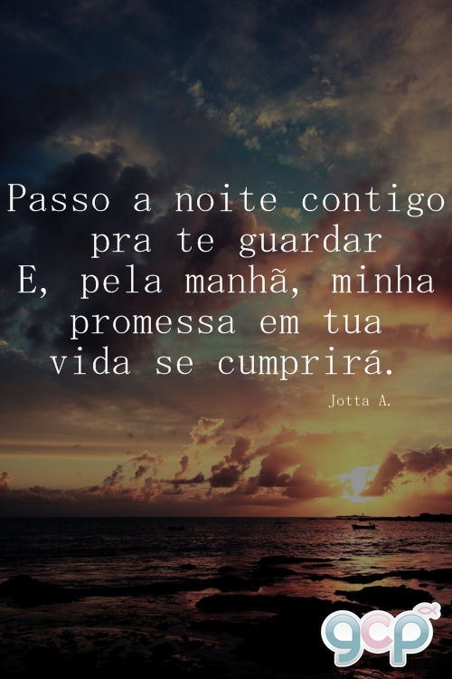 Promessa 12 de abril de 2013 Por camibarbosa Passo a noite contigo para te guardar, e pela manhã, minha promessa em tua vida se cumprirá