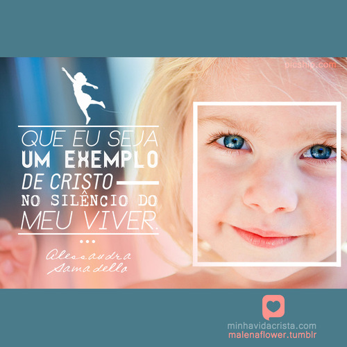 Quero ser um exemplo de Jesus 14 de setembro de 2012 Por Rosane Que eu seja um exemplo de Cristo no silêncio do meu viver (Alessandra Samadello)