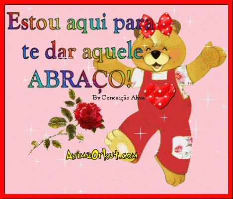 Categorias Abraços Tags abraço, abraço apertado, Alegria, amiga, amigas, amigo, amigos, Amizade, amizades, Amor, apertar, Beijinhos, beijinhos estalados, beijo, brilhante, brilhantes, Brilho, carinho, Colorido, coração, Engraçado, felicidades, frase, garota, mensagem, orkut, Paz, recadinho, Recado, Saudade, scrap