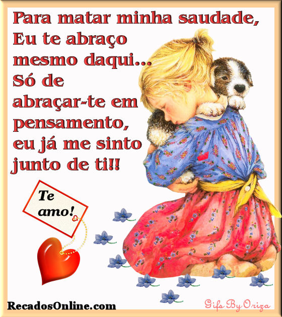Para matar minha saudade, eu te abraço mesmo daqui… Só de abraçar-te em pensamento, eu já me sinto junto de ti!