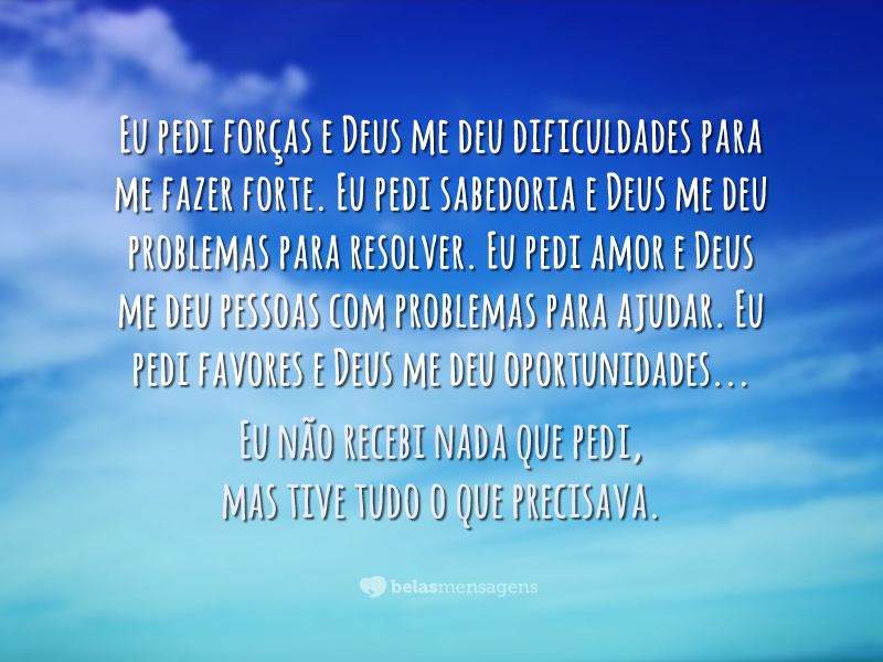 Nem sempre o que você pede é o que você precisa. Deus escuta as suas orações e sabe como você vai ser melhor!