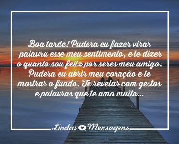 Sinto vontade de abrir meu coração para que você possa ver como eu sou feliz por seu seu amigo. Quero cultivar essa amizade e me revelar com gestos o quanto eu te amo.