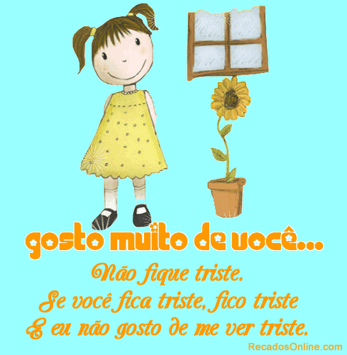 Gosto muito de você… Não fique triste. Se você fica triste, fico triste E eu não gosto de me ver triste.