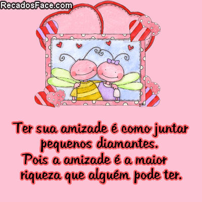 Ter sua amizade é como juntar pequenos diamantes. Pois a amizade é a maior riqueza que alguém pode ter.