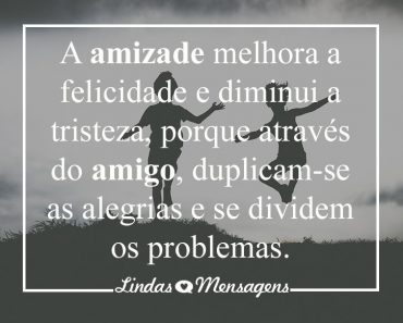 Você sabe, um amigo de verdade, não se conquista rápido, se conquista com dificuldades, com superação. Por um grande amigo fazemos qualquer coisa. Vivemos momentos de alegria e tristeza, mas o importante mesmo é que vivemos tudo isso juntos! Eu posso dividir os meus segredos, dúvidas e raivas. Sei que posso contar sempre com você. … Ler mais