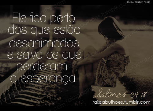 “O Senhor fica perto dos que estão desanimados e salva os que perderam a esperança.” Salmos 34.18