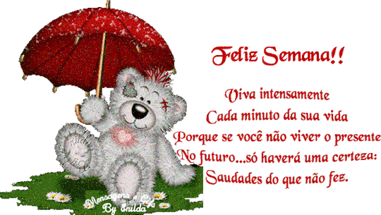 Feliz semana! Viva intensamente cada minuto da sua vida, porque se você não viver o presente No futuro… só haverá uma certeza: Saudades do que não fez.
