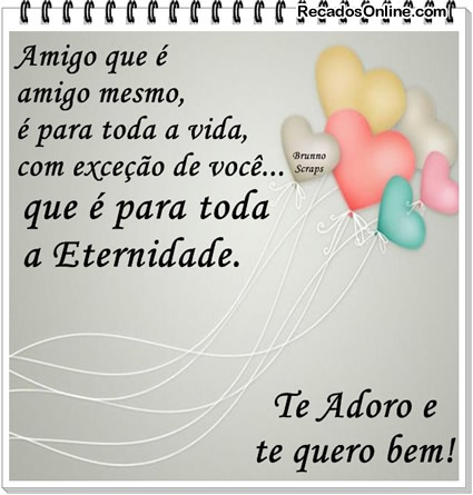 Amigo que é amigo mesmo, é para toda a vida, com exceção de você… que é para toda a eternidade! Te adoro e te quero bem!