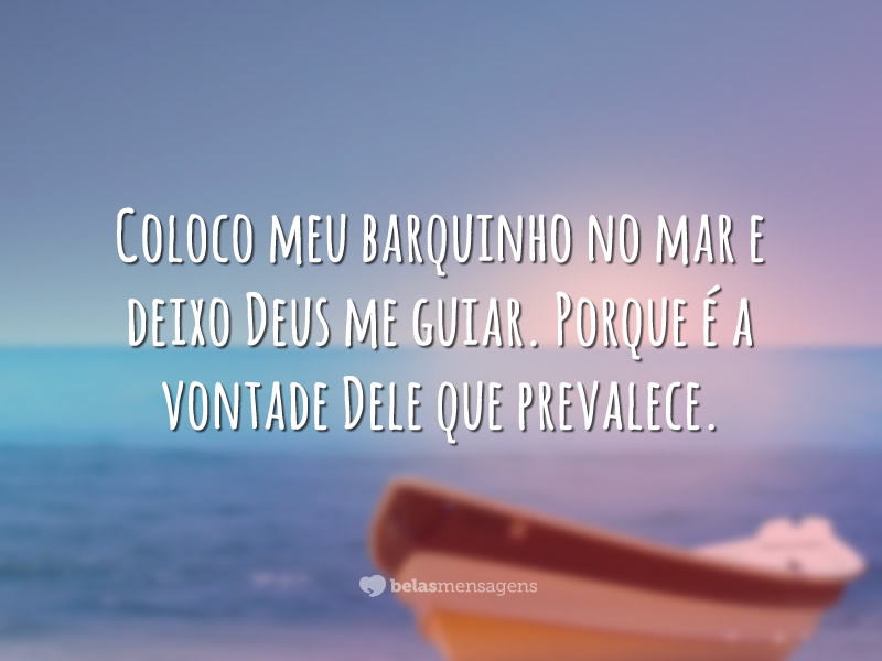 Deus toma a direção do meu barco e me leva para onde quiser, confio em Ti e sei que vai me levar para o lugar certo.