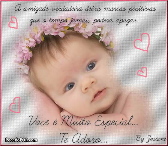 A amizade verdadeira deixa marcas positivas que o tempo jamais poderá apagar. Você é muito especial, te adoro!