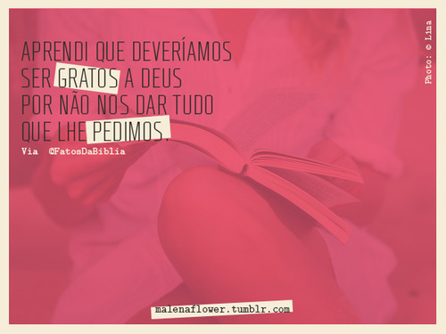 Aprendi que deveríamos ser gratos a Deus por não nos dar tudo que lhe pedimos. (@Fatosdabiblia)