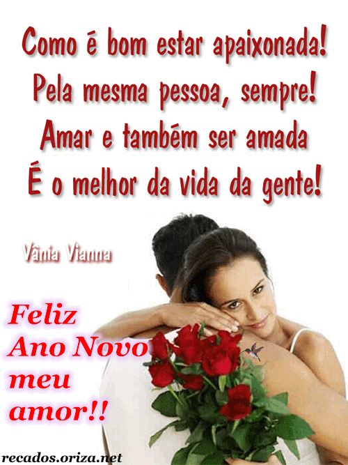 Como é bom estar apaixonada! Pela mesma pessoa, sempre! Amar e também ser amada! É o melhor da vida da gente! Feliz ano novo, meu amor!