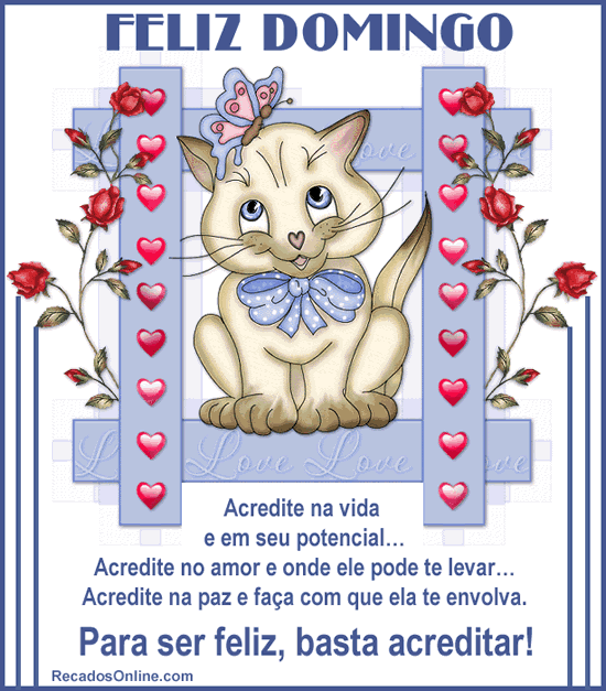 Feliz domingo! Acredite na vida e em seu potencial… Acredite no amor e onde ele pode te levar… Acredite na paz e faça com que ela te envolva. Para ser feliz, basta acreditar!