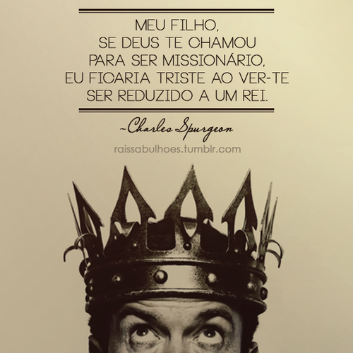 Meu filho, se Deus te chamou para ser um missionário, eu ficaria triste ao ver-te ser reduzido a um rei.