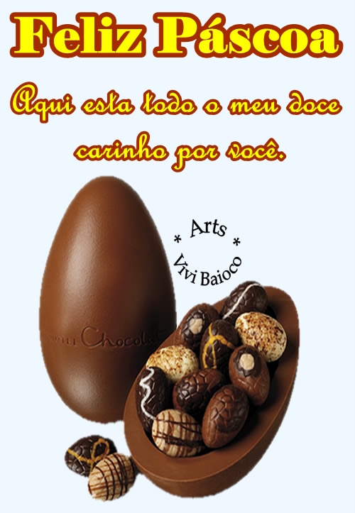 Feliz páscoa! Ao abrires teu ovo de páscoa espero que encontres dentro dele um bombom de amor, outro de saúde e um terceiro que te introduza a orar pela paz!