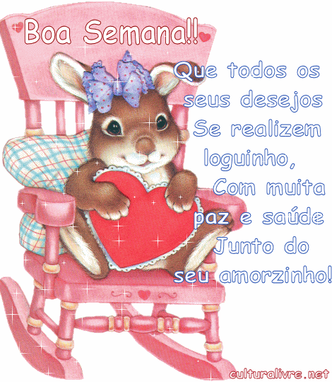 Boa semana! Que todos seus desejos se realizem loguinho, com muita paz e saúde junto do seu amorzinho!