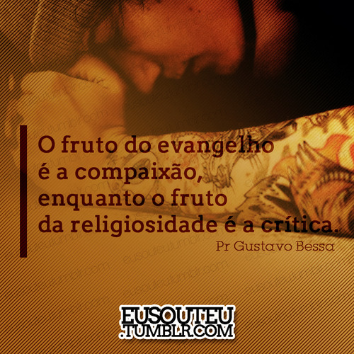 O fruto do Evangelho é a compaixão, enquanto o fruto da religiosidade é a crítica. (Gustavo Bessa)