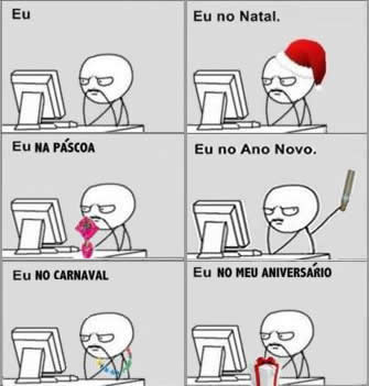 Eu, eu no natal, eu na páscoa, eu no ano novo, eu no carnaval e eu no meu aniversário.