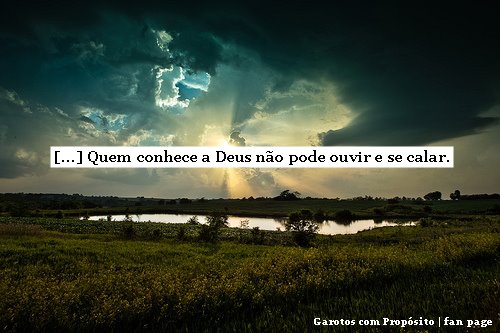 Quem conhece 15 de janeiro de 2013 Por Denise Cortazio Quem conhece a Deus, não pode ouvir e se calar.