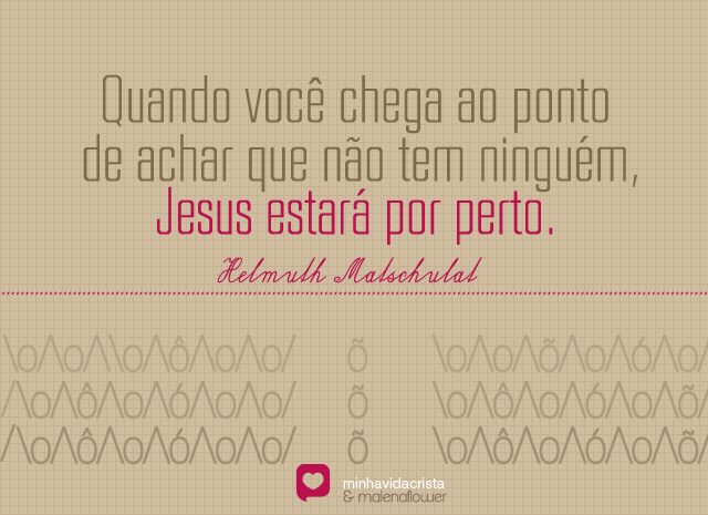 Quando você chega ao ponto de achar que não tem ninguém, Jesus estará por perto. (Helmrelh Malschrelal)