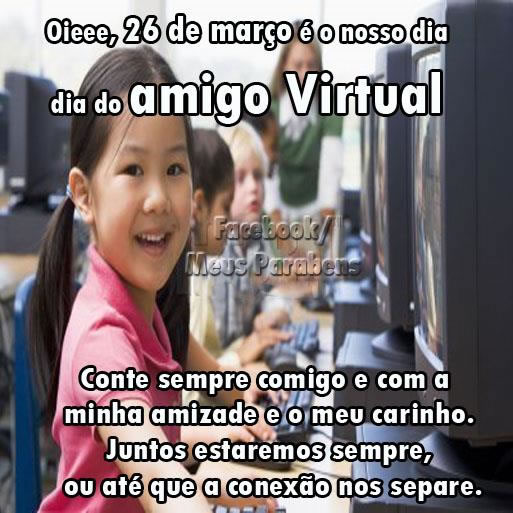 Oiee 26 de março é o nosso dia Dia do amigo virtual! Conte sempre comigo e com a minha amizade e o meu carinho. Juntos estaremos sempre, ou até que a conexão nos separe!