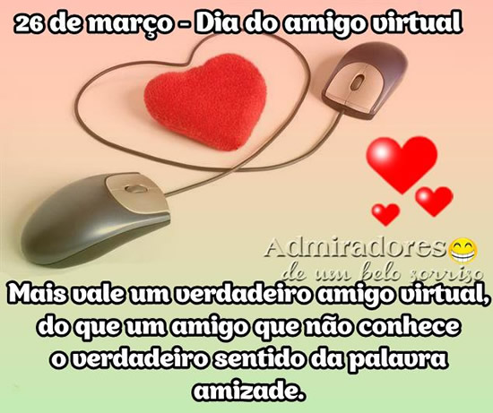 26 de março: dia do amigo virtual Mais vale um verdadeiro amigo virtual, do que um amigo que não conhece o verdadeiro sentido da palavra amizade.