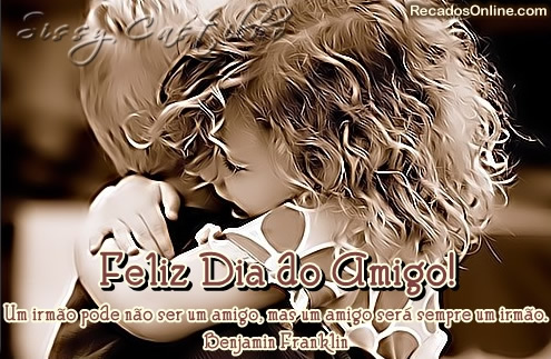 Feliz dia do amigo! Um irmão pode não ser um amigo, mas um amigo será sempre um irmão. (Benjamin Franklin)