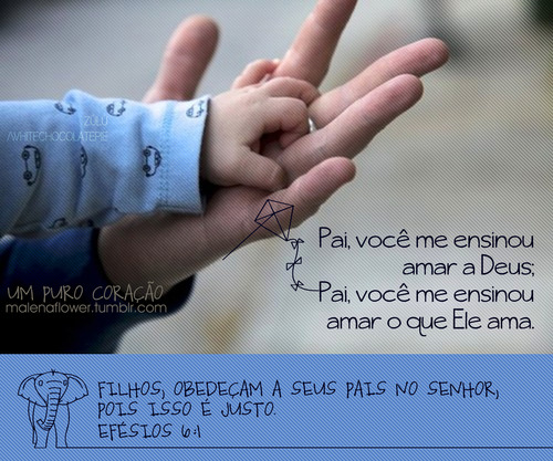 Pai, você me ensinou a amar a Deus Pai, você me ensinou a amar o que Ele ama Filhos, obedeçam a seus pais no Senhor, pois isso é justo. Efésios 6.1