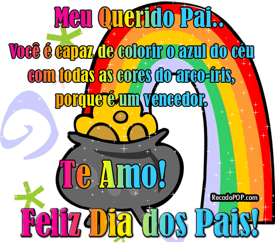 Meu querido pai Você é capaz de colorir o azul do céu com todas as cores do arco íris, porque é um vencedor. Te amo!