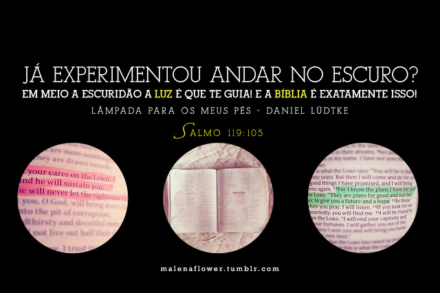 Já experimentou andar no escuro? Em meio à escuridão a luz é que te guia! E a Bíblia é exatamente isso! Lâmpada para os meus pés é a Tua palavra, e luz para o meu caminho. Salmos 119.105