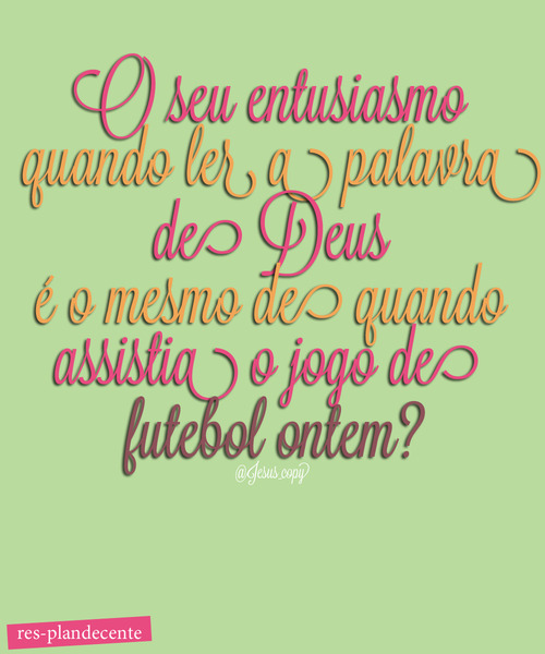 O seu entusiasmo quando lê a Palavra de Deus é o mesmo de quando assistia o jogo de futebol ontem? (@Jesus_copy)