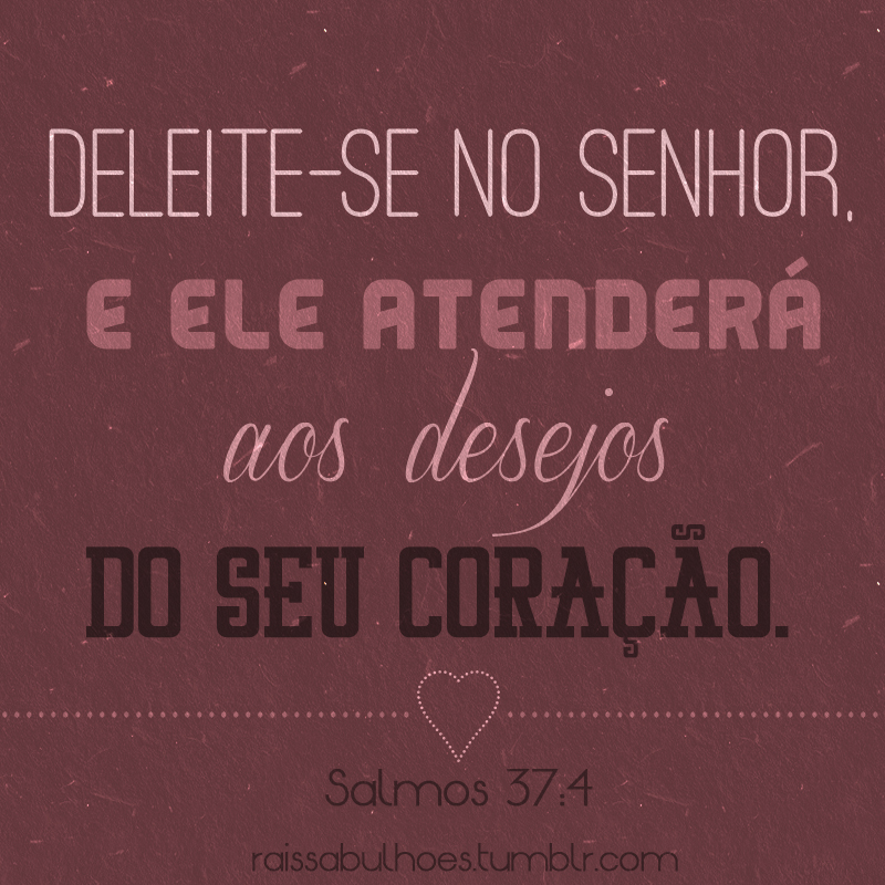 “Deleite-se no Senhor e Ele atenderá os desejos do seu coração.” Salmos 34.7