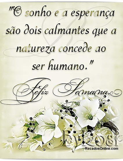 “O sonho e a esperança são dois calmantes que a natureza concede ao ser humano.” Feliz semana.