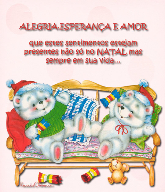 Alegria, esperança e amor Que estes sentimentos estejam presentes não só no NATAL, mas sempre em sua vida.